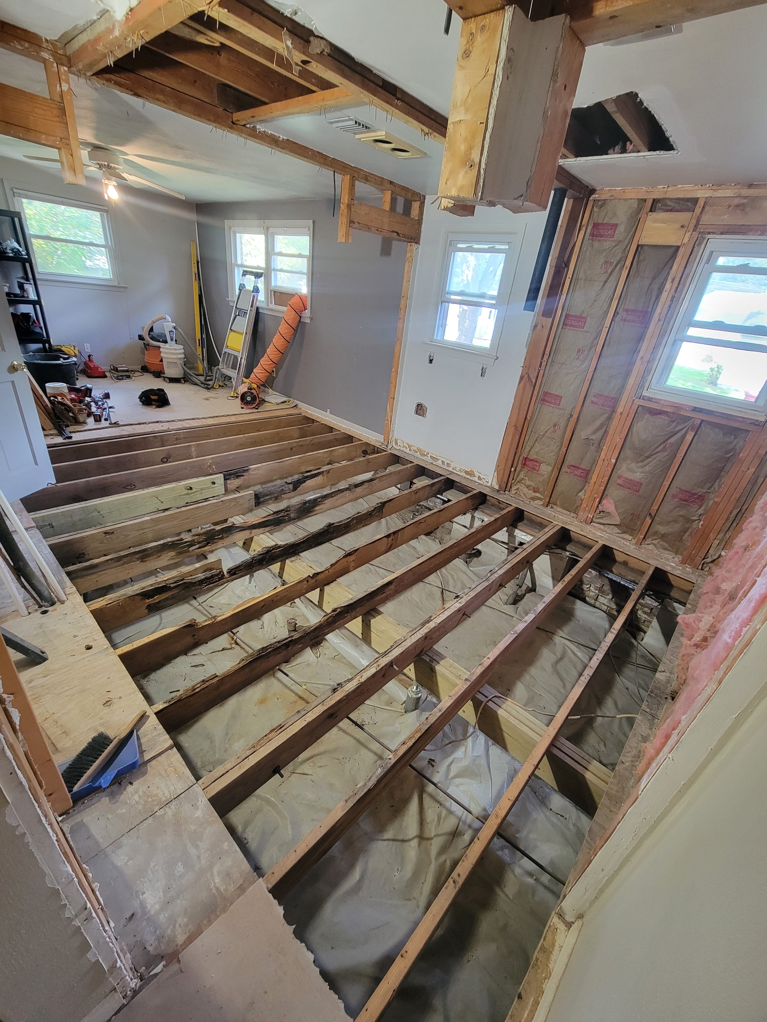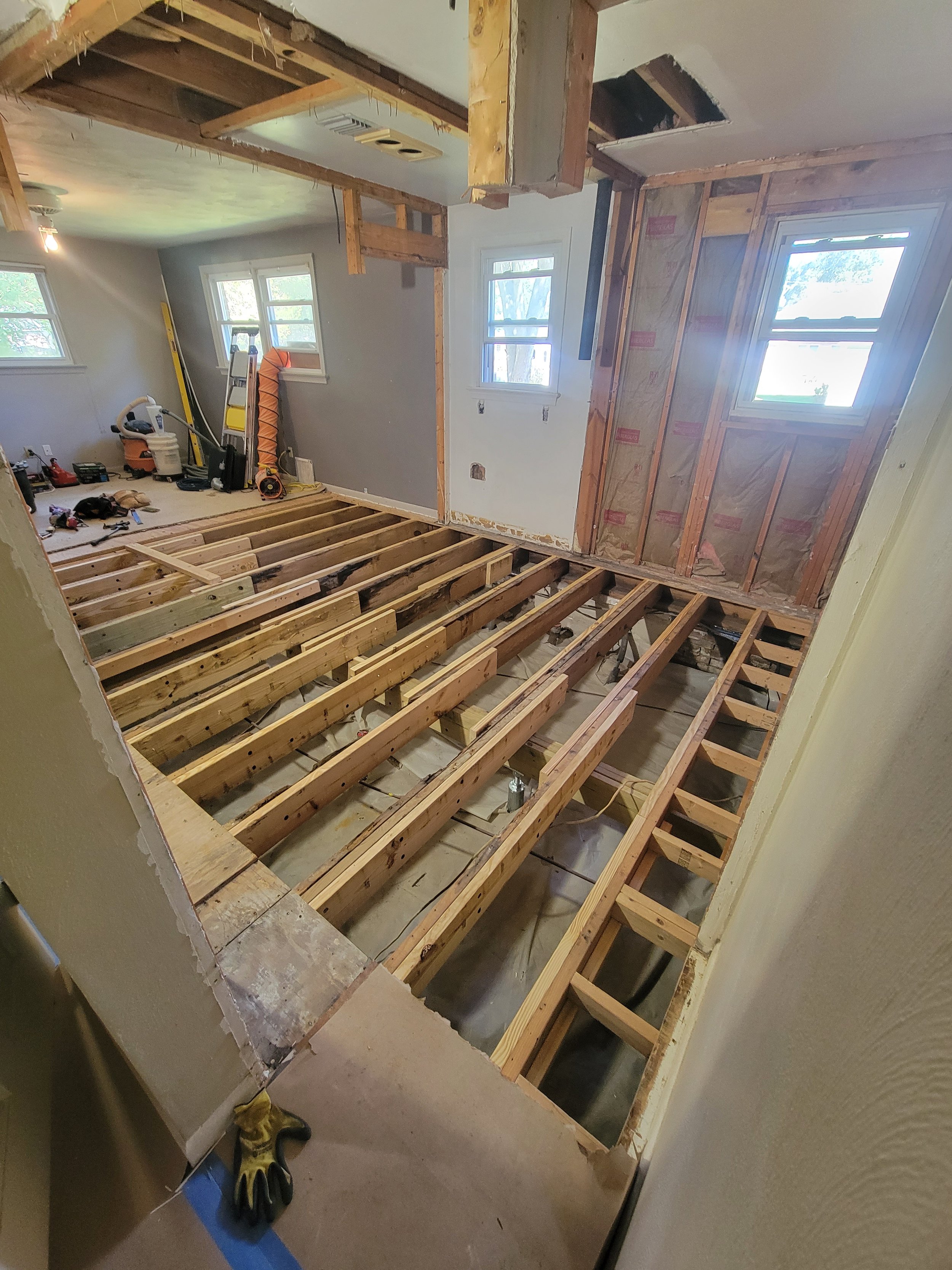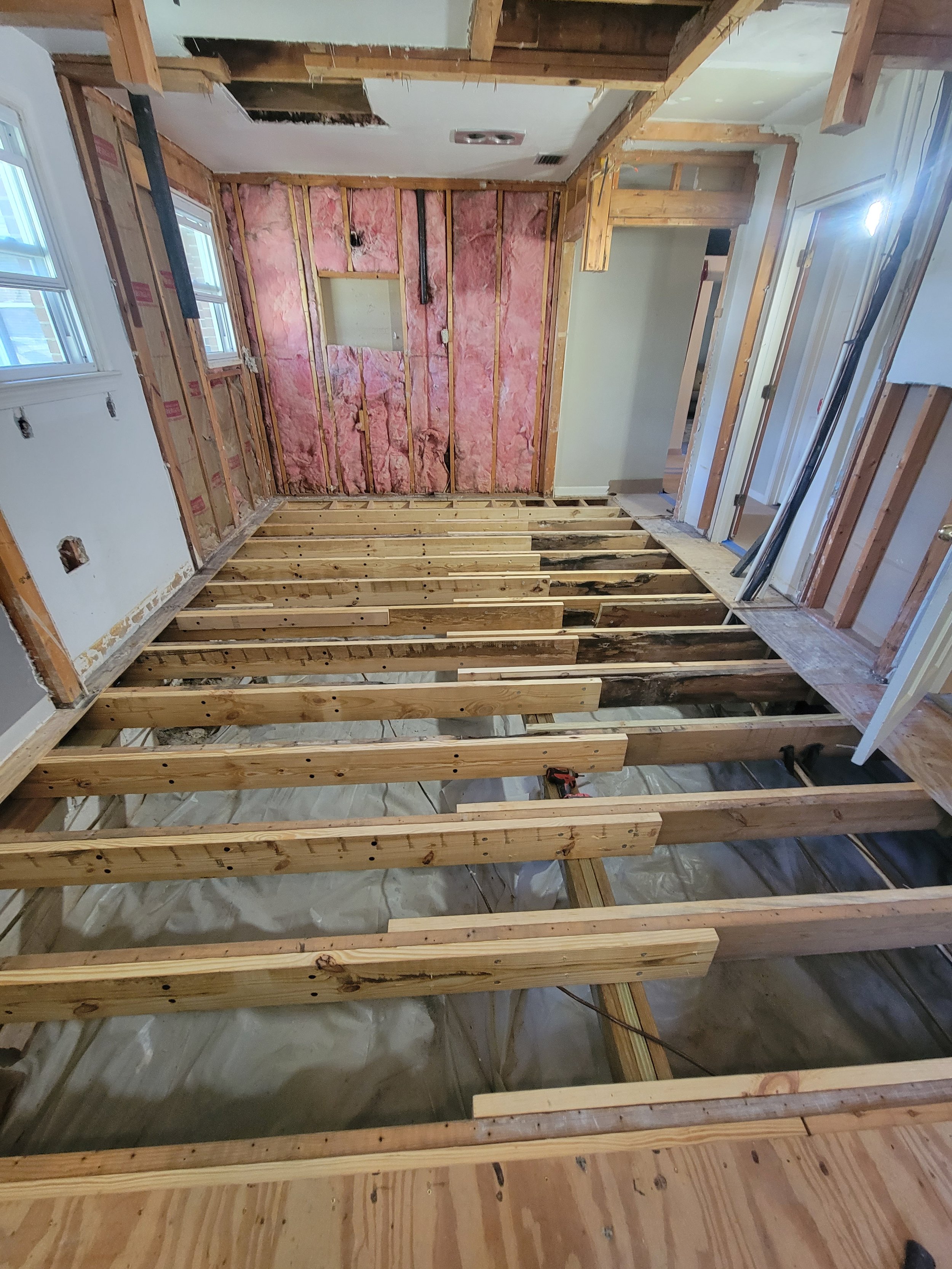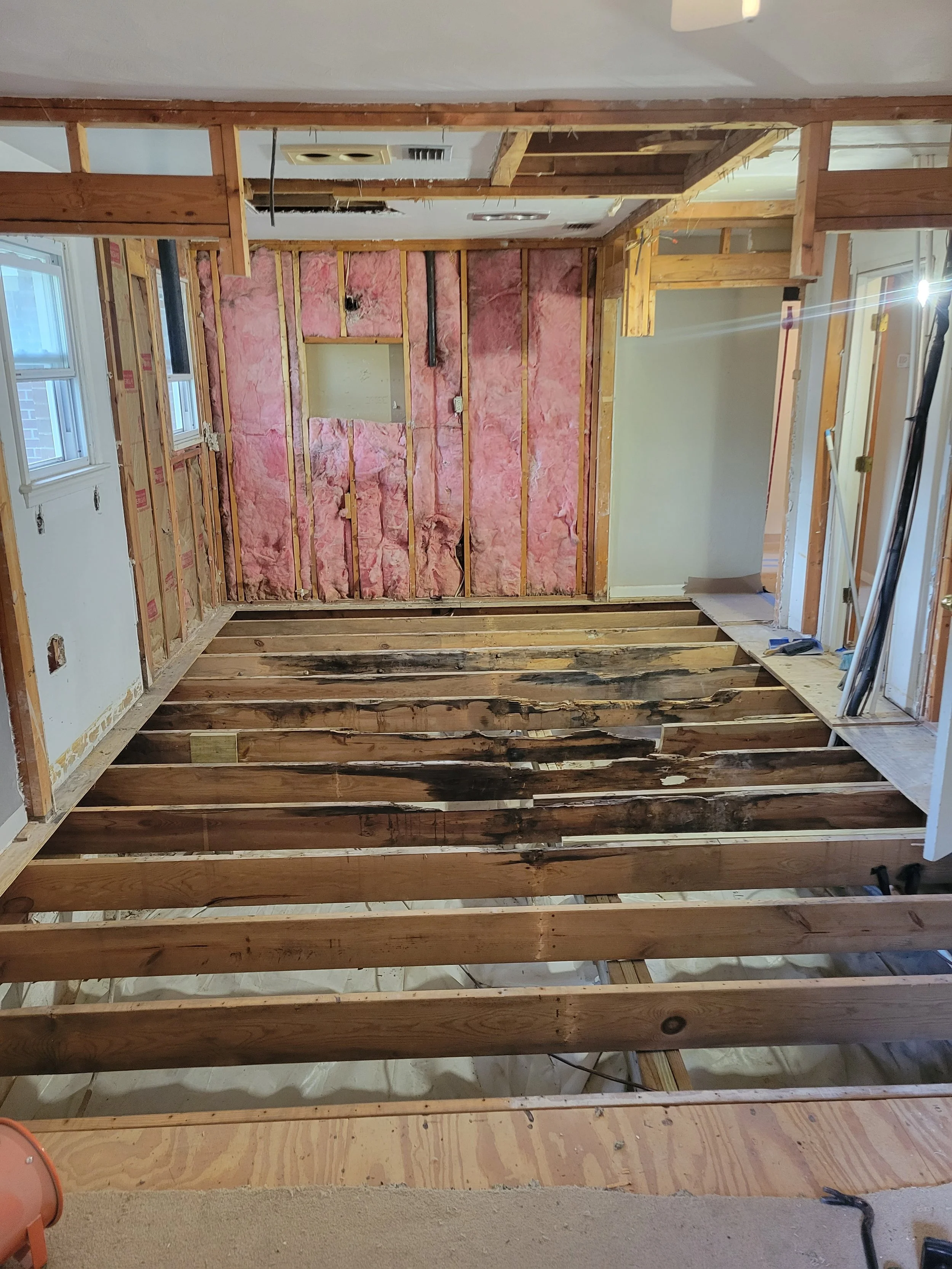 Outdated configurations and damaged framing made the spaces feel disjointed and impractical, requiring a full rebuild to restore safety, improve flow, and create bathrooms that functioned better for modern living.
