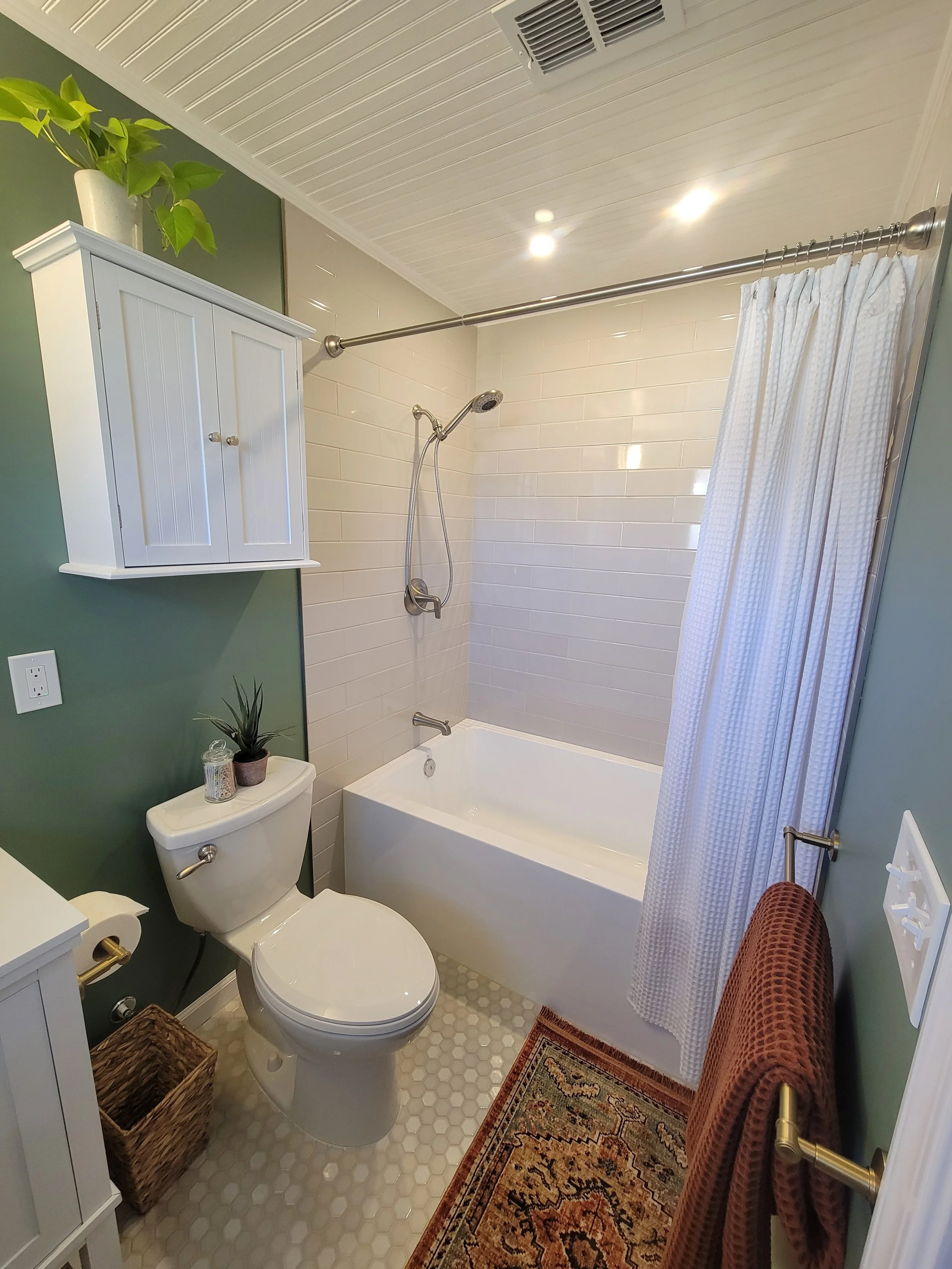 This project reimagined a large section of a 1970s ranch, transforming two back-to-back bathrooms and the surrounding storage areas into spaces that feel solid, intentional, and completely renewed. What began as a necessary repair evolved into an opportunity to dramatically improve both function and flow.