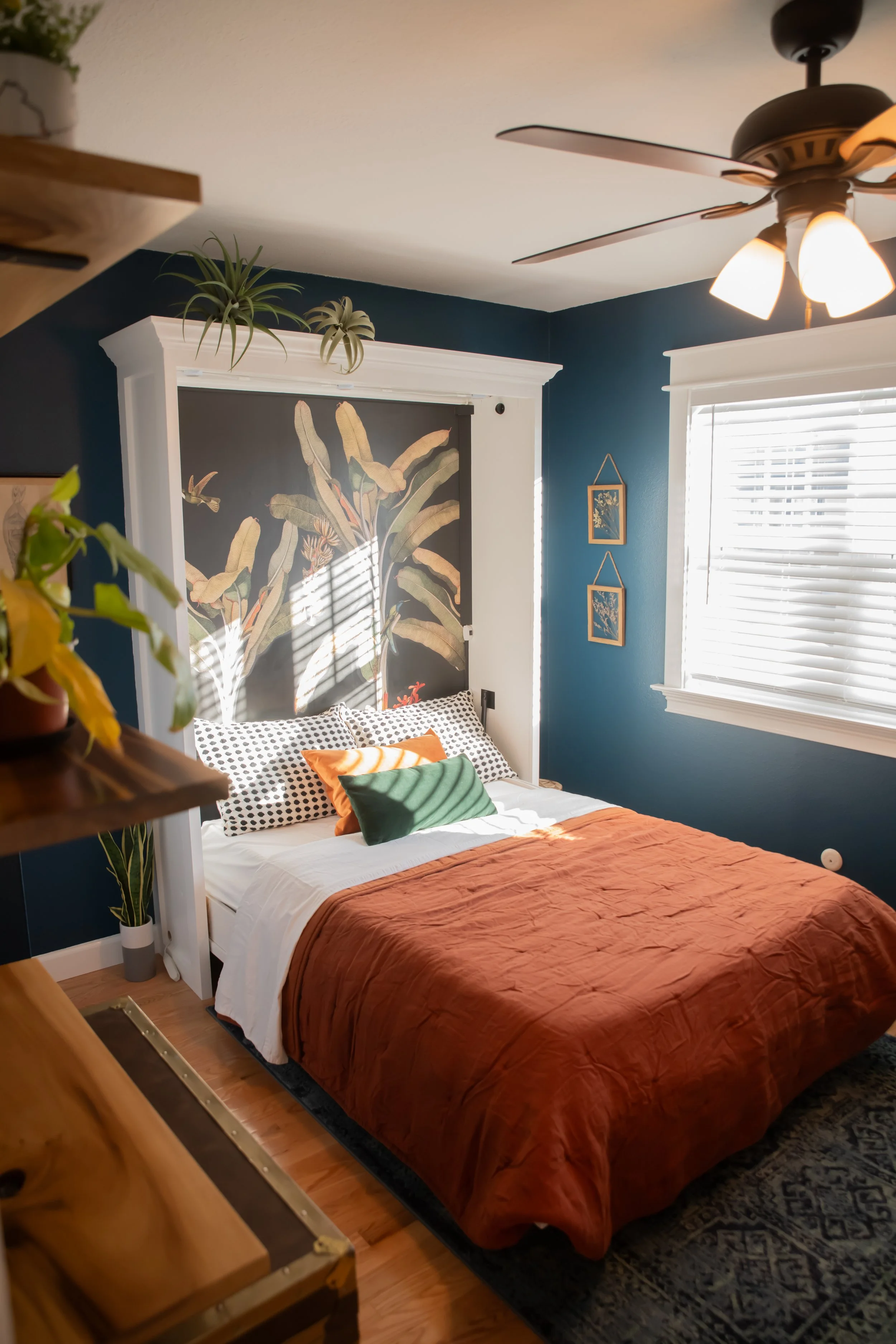 Upstairs, the guest room was given a major facelift, featuring a custom Murphy bed built by Tony and a refinished buffet that adds both charm and function.